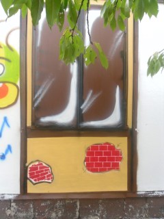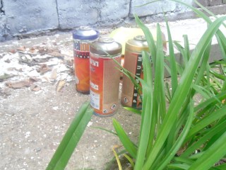 Beim Sprühen ist dies entstanden und ziert seit Wochen die Wand, nur etwas unfertig fand ich.