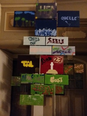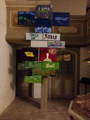 Das Graffitiprojekt vom Frühjahr hat seinen Platz gefunden. Ihr findet es in der Kirche Skassa.