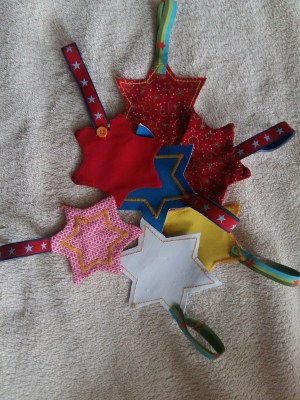 Die Zeit verinnt. Draußen werden die Novembertage immer trüber, genauso die Simmung. Damit die Depri nicht auf Dauer die Überhand nimmt, hab ich mir bunte Stoffreste gesucht und drauf los genäht. Ein paar bunte Sterne für die Adventszeit sind entstanden.
