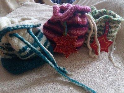 Ein paar fanden auch schon den richtigen Einsatzort, an meinen strickgefilzten Säckchen.