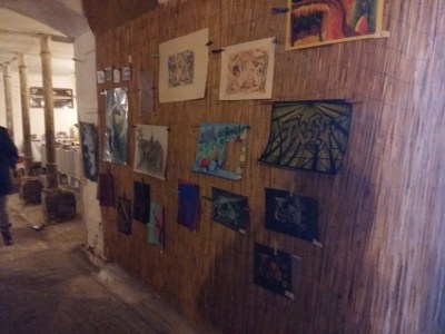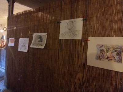 Zusammen mit Wofi und Momo betreiben wir einen Stand mit vielen Kunstwerken, meist Stencil- Graffiti, aber auch kleine genähte Mitbringsel und kleinem Mitmach- Angebot.