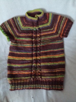 Ein warmer Überziehpullover ist in der letzten Zeit entstanden. Eine Anleitung gab es nicht. Mit einem der RVO- Rechner hab ich nur die Anzahl der Maschen zur Aufnahme errechnet und dann ging es los, mit Raglan von oben, dazu noch ein Zopfmuster am Vorderteil.