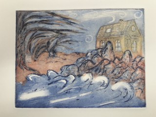 Der „Alte Baum“ entstand, um mit verschieden Techniken, der Radierung, zu expereimentieren. Daher gibt es verschiednene Druckvarianten, mit verschiedenen Farben und unterschiedlichen Druckstatien. Dies hier ist einer der ersten Drucke mit zwei Platten. Das Motiv hat die Größe einer Postkarte, sprich A6. Ich fertigte noch eine dritte Platte, bei der noch etwas mehr Farbe ins Spiel kommt.
