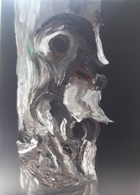 Da der Kurs, nicht Illustrationen zeichnen, sondern Landschaftmalerei hieß, wurde auch zur Farbe gegriffen. Unser Kursleiter Pitt Müller erklärte und zeigte uns kurz ein paar Techniken im Umgang mit Acrylfarbe und dann durften wir uns ausprobieren. Mit Farbe und Pinsel malen, war mir nichts neues, aber mit Spachtel und Reliefpaste schon. Bei diesen Bildern nutzte ich, die für mich neuen Materialien, besonders oft: