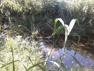 | Auch Wasser gibt es in der Landschaft. Die Keppritz lud, bei klarem Wasser, zum Verweilen ein. Es plätscherte langsam vor sich hin, auch den Libellen gefiel dies. |