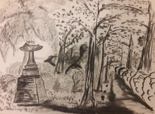 | Es ist keine reine Kohlezeichnung, oben links nutzte ich den Stein des Denkmales und rieb ihn mit einem Grafitstift durch. |