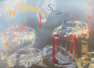 ein vom Dieselskandal betroffenen PKW mit Graffiti umgestalten.