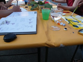 Die Besucher hatten viel Spaß daran ihre eigenen Werke zu erstellen. Neben den ganzen Erfahrungen mit Farbe, Pinseln, Cuttermesser, durften Unterhaltungen bei einem guten Glas Wein oder Bier nicht fehlen.