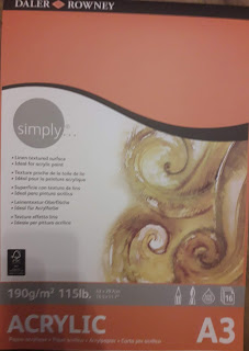 vor ein paar Tagen verspürte ich die Lust etwas zu malen, doch fehlte es an einer Leinwand oder Papier für meine Farben. Zum Gerstäcker wollte ich nicht fahren, da fehlte die Motivation. So ging ich zum ansässigen Schreibwarengeschäft. „Die werden schon etwas haben.“dachte ich mir. Jo einen Block für Acrylfarbe Größe A3, mit Leinentextur und 190g/m² gab es, den ich auch mitnahm. (immerhin 10 Euro)
