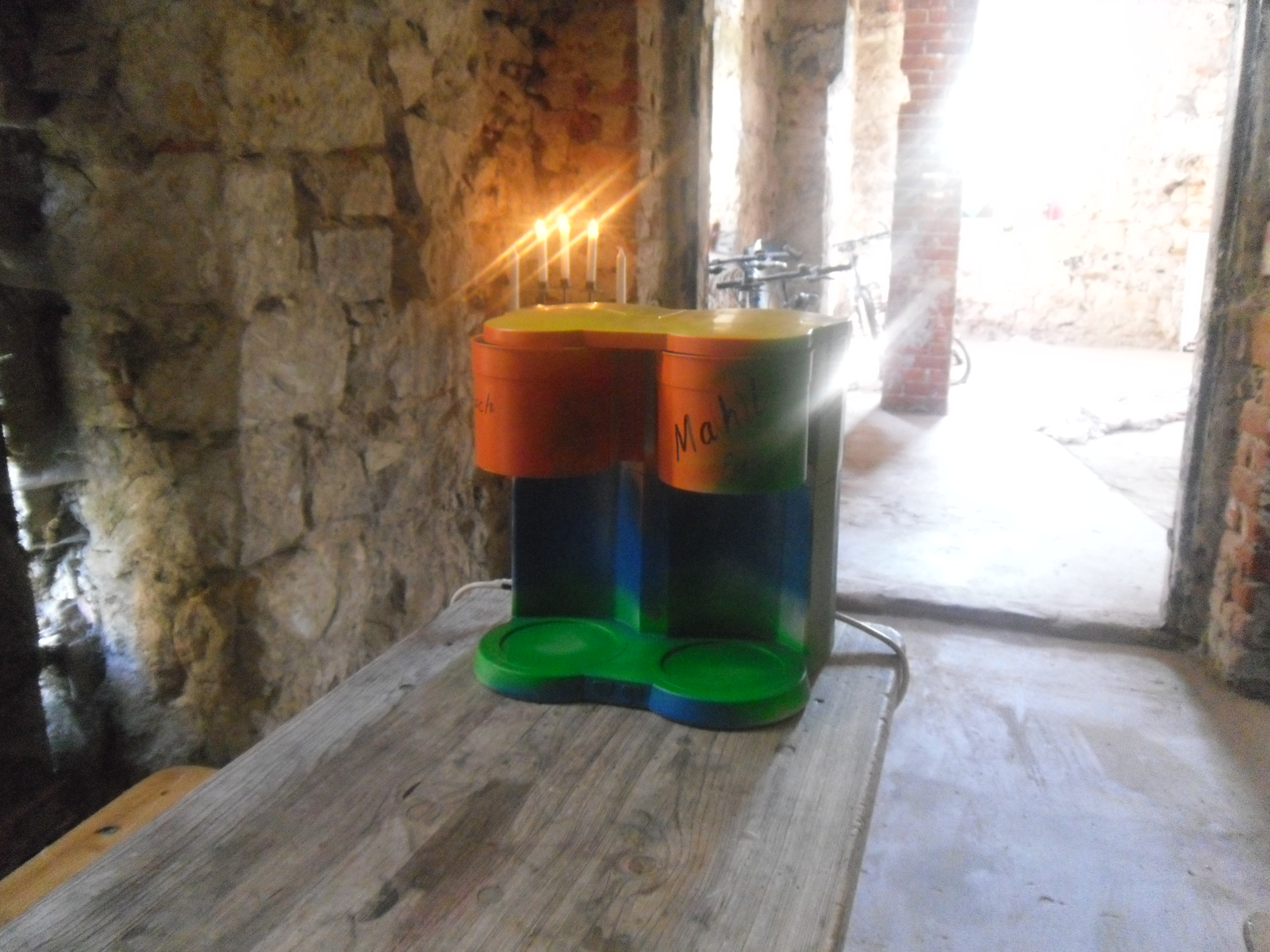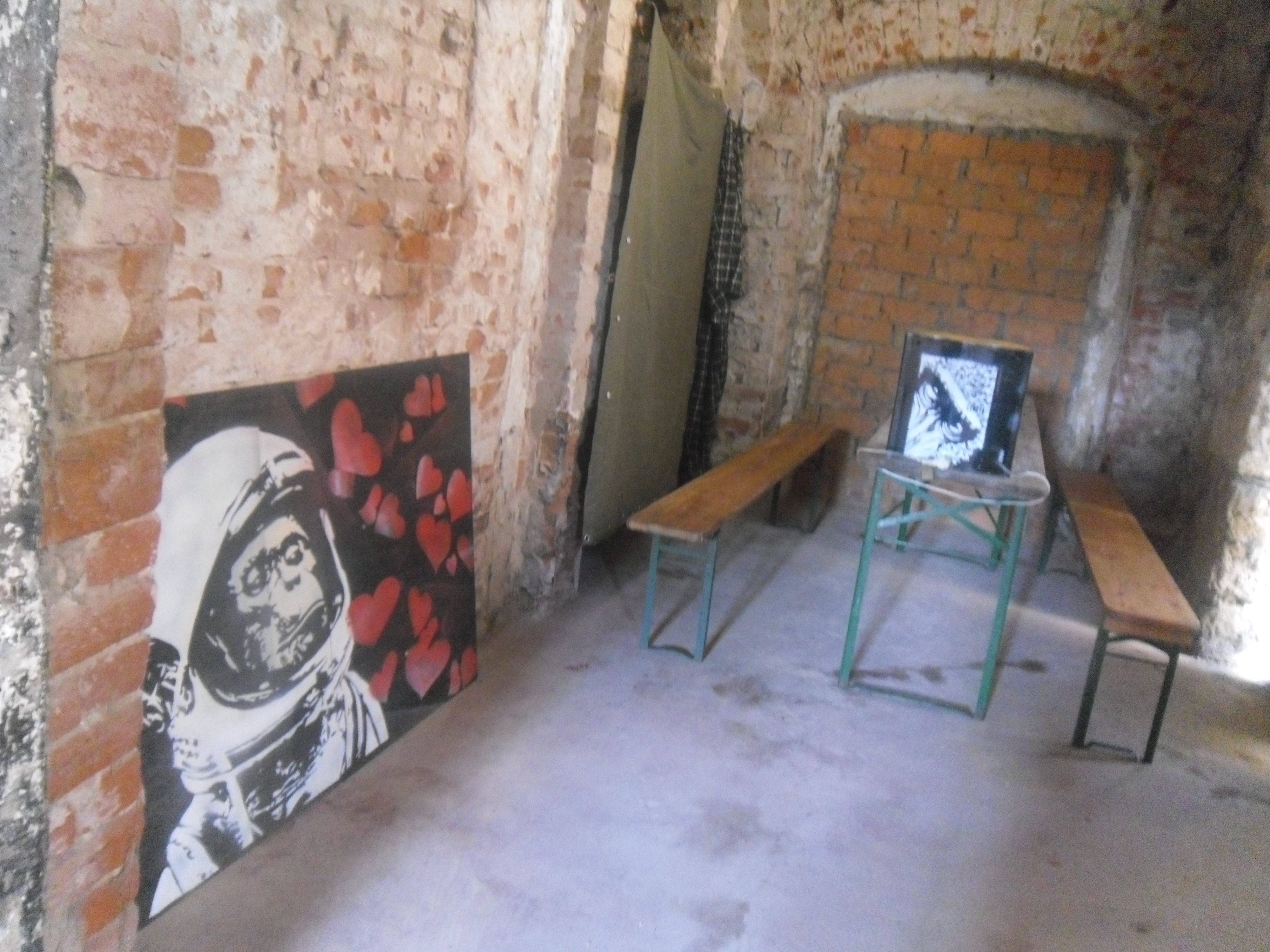 Im Sommer 20?? gestaltete ich eine kleine Ausstellung auf dem Gut Göhlis mit. Die Räumlichkeit bestand aus einem alten Teil des Gebäudes in dem es auch noch so einige alte Gegenstände gab. Ich fand es sehr interessant die alten Dinge mit der modernen Kunst, des Stencil Graffiti zu kombinieren.