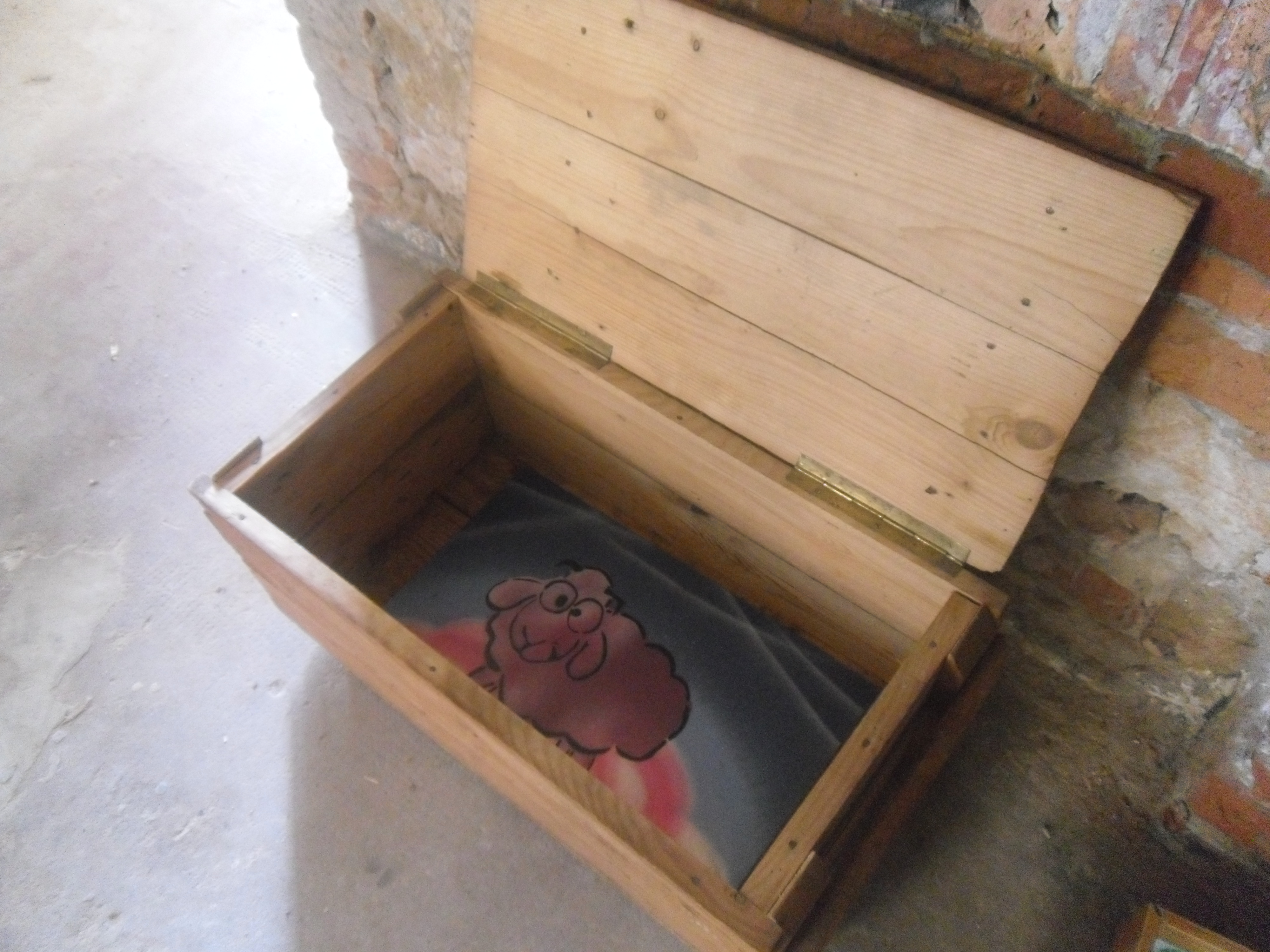 In dieser Zeit probierte ich mich auch an „normalen“ Graffitos aus. Gern besprühte ich legale Wände und Fläche, sucht Möglichkeiten, wo ich die Technik praktisch nutzen könnte. Da bekam eine ausgediente Kinderkommode einen neuen farblichen Look. Meine Gartenlaube diente für mich als Sprühfläche. Hier dachte ich „Was wird der Gartenvorstand sagen?“. Doch der fand die Laube gut.