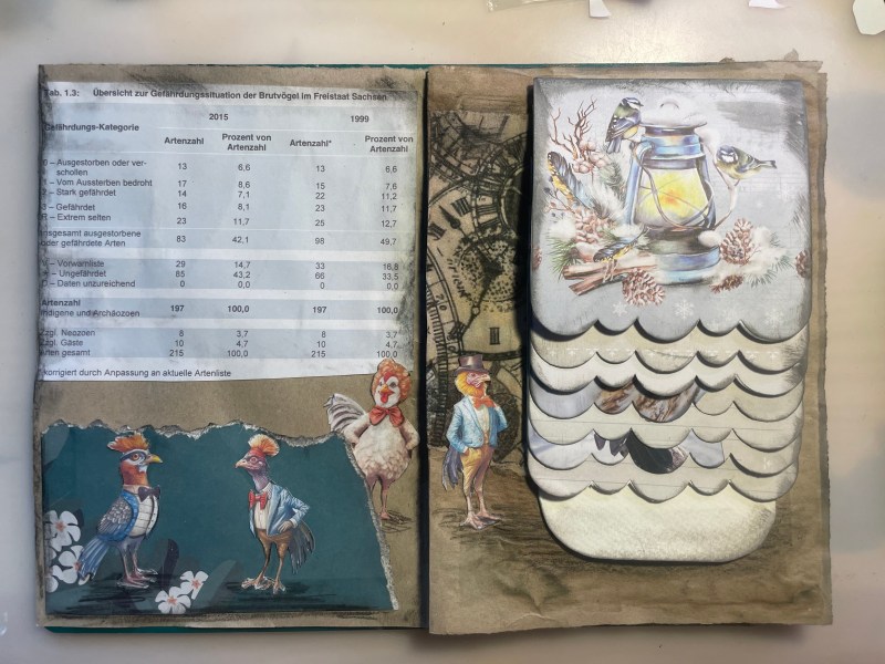 Da der Garten seine verdiente Winterruhe hält und ich gern kreativ aktiv bin, fing ich an mein erstes Junk Journal zu gestalten. Es wird ein Werk des Ausprobierens und ein anderer Rückblick auf das Jahr 2023. Es gibt eine Dezemberaktion bei Luise Heinzl. Die Impulse der Aktion helfen bei der Gestaltung. Jetzt kann ich endlich das Papier aus den Paketen einem guten Zweck zukommen lassen. Ganz nebenbei macht es noch Spaß.