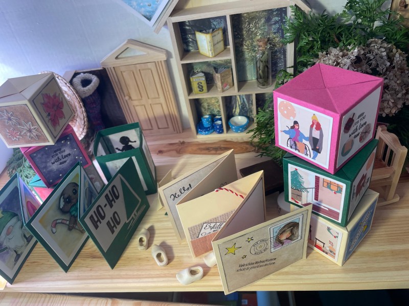 Ich fand tolle Bastelanleitungen für Schachteln und Kartons. So entstanden die kleinen Mitbringsel für den Markt. Es ist jedoch nichts aus dem Packpapier, aber aus Papier, was so kaum genutzt wurde. Ganz nebenbei konnte ich zeichnen und der Kreativität freien Lauf lassen. Erstaunlicherweise kamen genau diese Dinge gut bei den Besuchern an und gingen auf Reise zu neuen Besitzern.