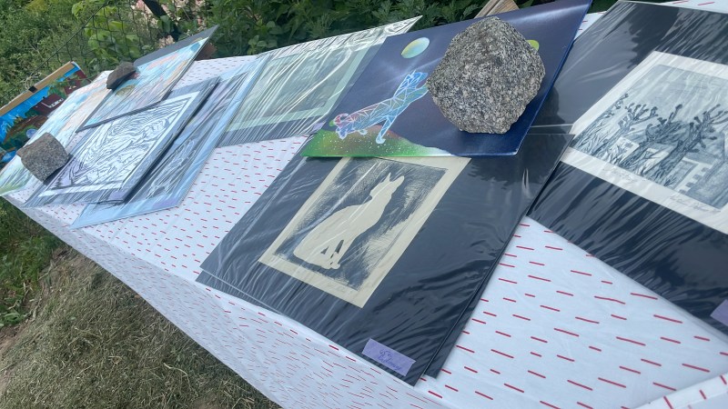 In den vergangenen Tagen lief einiges an Vorbereitungen, die direkt für das Gelingen der Veranstaltung sorgen sollten. Ich mähte die Wege, hing Bilder in die Laube, so wie in einer Galerie. In Radebeul suchte ich passende Arbeiten aus, packte diese zusammen und fuhr sie in den Garten.