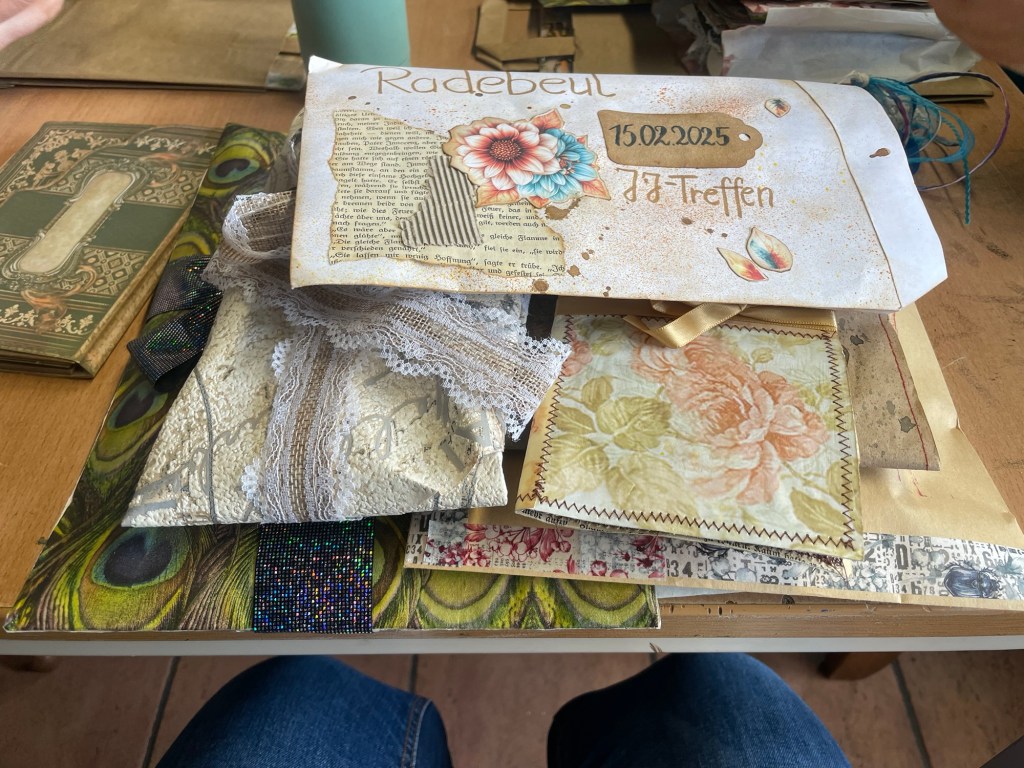 Seit ungefähr November 2024 bin ich dem Virus, Junkjournal herstellen, verfallen. Immer wieder suche ich mir neue Inspirationen und Ideen auf verschiedenen Plattformen. Auch zeige ich eigene Ideen auf YouTube oder auf anderen Plattformen. Aber ein persönliches Gespräch und der gegenseitige Austausch, sind etwas anderes. So lud ich zum 1. Junkjournal Treffen in Radebeul ein.