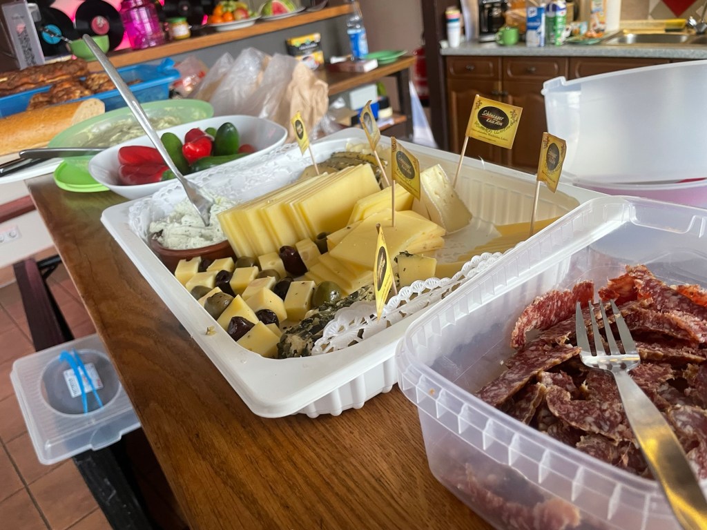 Bei so vielen Einflüssen darf das leibliche Wohl nicht zu kurz kommen. Damit wir nicht vom Stängel fallen, brachte jede eine Kleinigkeit mit. So entstand eine bunte Tafel mit Leckereien.